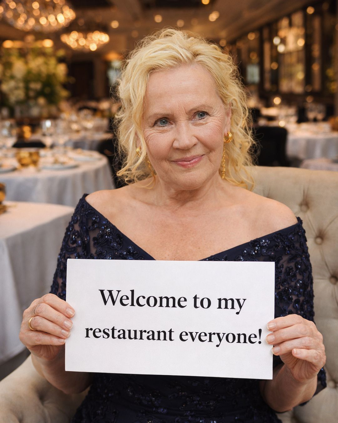 Now, for the “News That Has Millions Screaming.” We all know that Agnetha has been the “Billionaire Stranger” of the music world, rarely seen in public. But to mark this “new beginning,” the legend herself has committed to making “Secret Appearances” at the restaurant throughout the grand opening week!